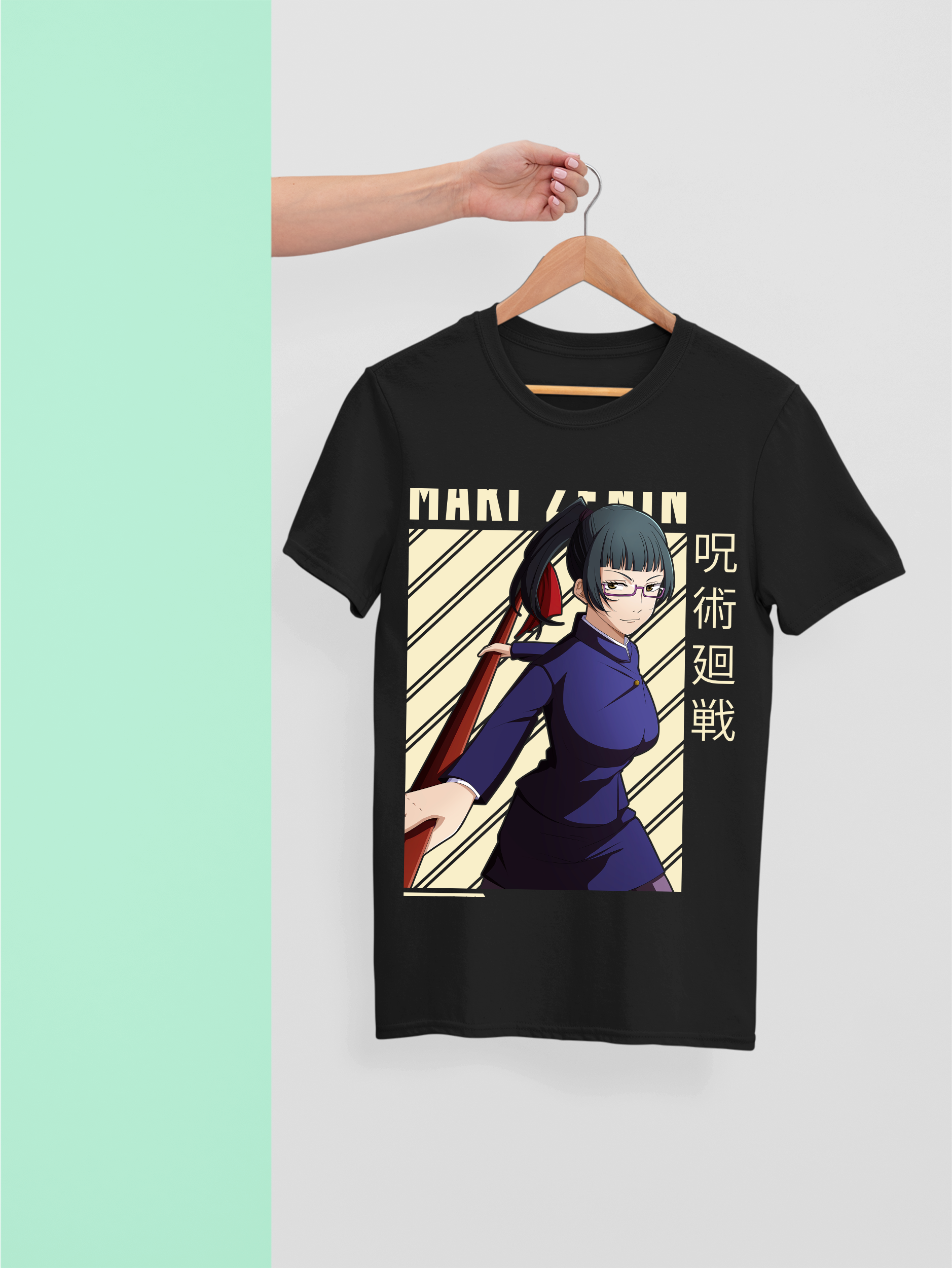 This bold Maki Zenin design celebrates unmatched strength, sharp attitude, and fearless rebellion from Jujutsu Kaisen. Perfect for fans who stand strong on their own terms.