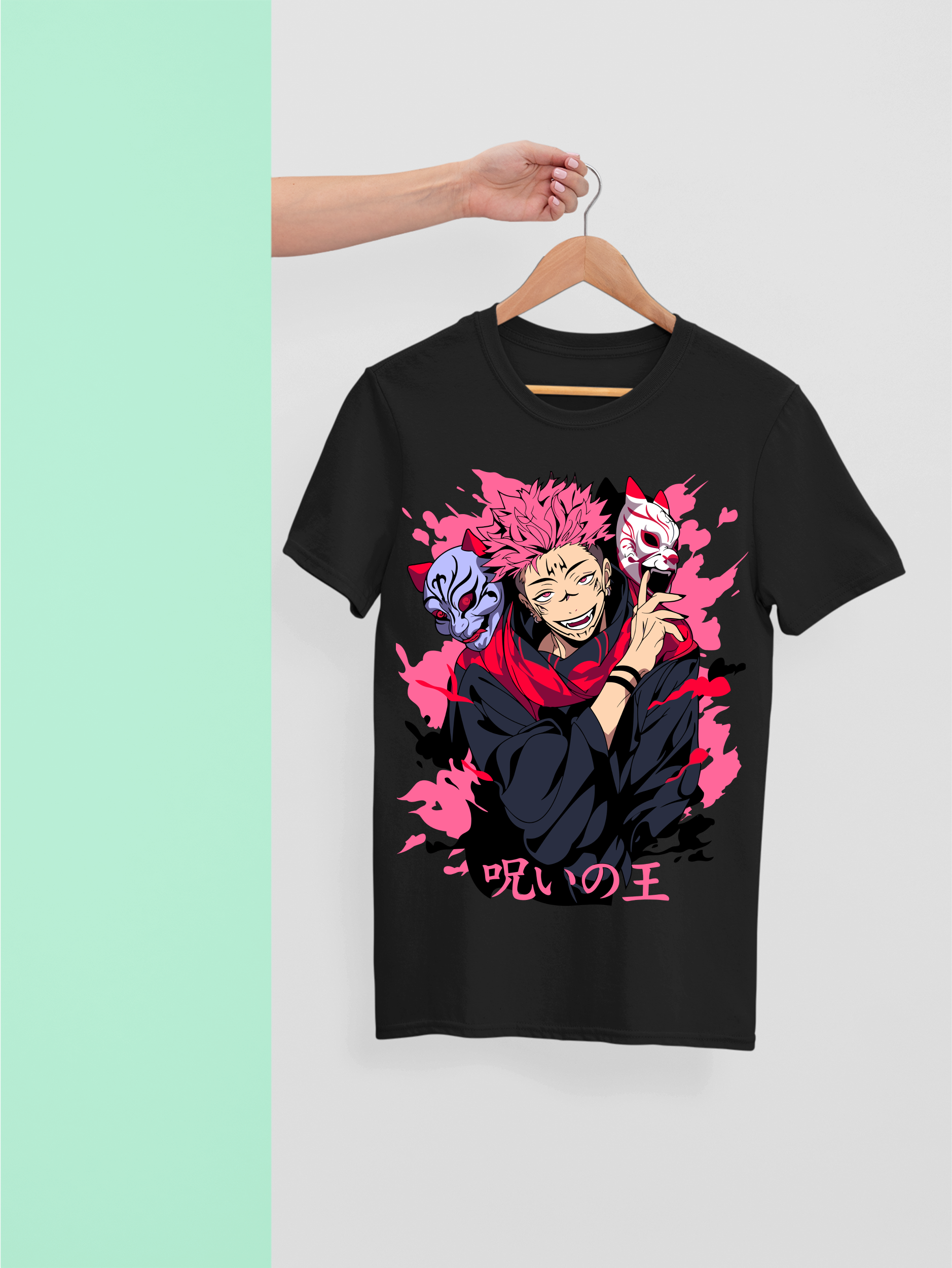 Dive into the chaotic charm of Ryomen Sukuna, the King of Curses. This artwork captures Sukuna’s wicked grin and commanding presence, surrounded by two haunting masks and vivid pink cursed energy. His confident posture and sharp eyes hint at the terror beneath his smirk. Perfect for fans drawn to the dark and powerful side of Jujutsu Kaisen.