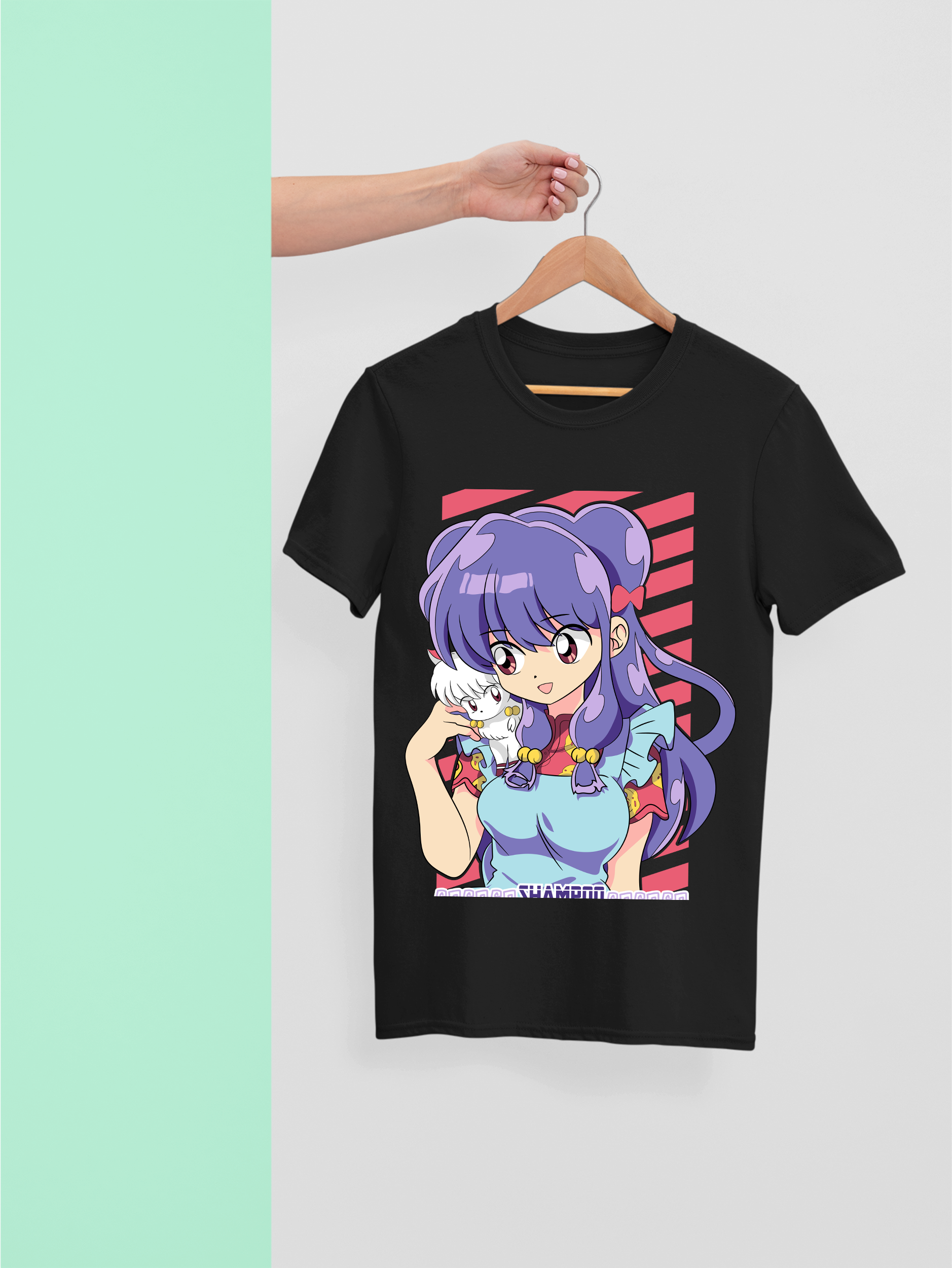 This adorable design features Shampoo from Ranma ½, holding her ever-loyal cat form, bursting with color and retro anime vibes. Her playful innocence meets confident strength, making this a must-have for fans of classic anime and bold-hearted heroines.