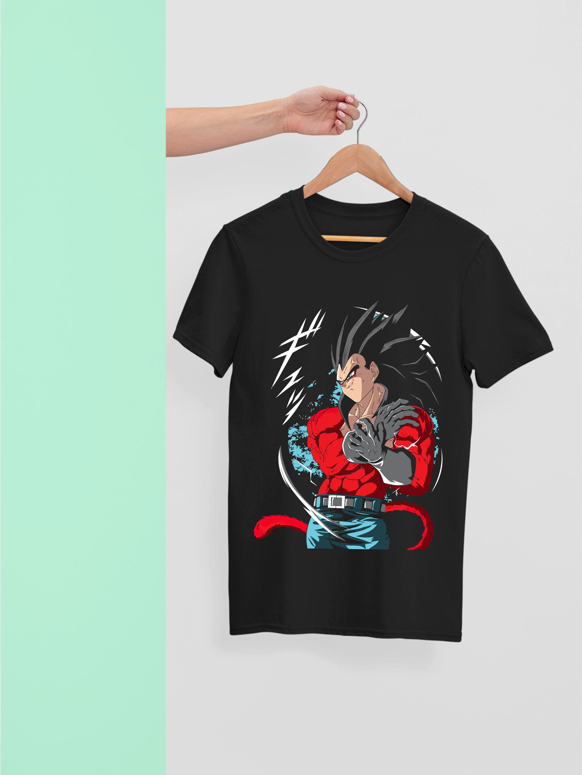 Embrace the raw primal energy of Super Saiyan 4 Vegeta in this fierce and dynamic illustration. With his signature crimson fur, long black mane, and unrelenting stare, this design captures the untamed Saiyan strength and pride that defines him. A must-have for Dragon Ball GT fans who admire Vegeta’s relentless evolution and warrior spirit.